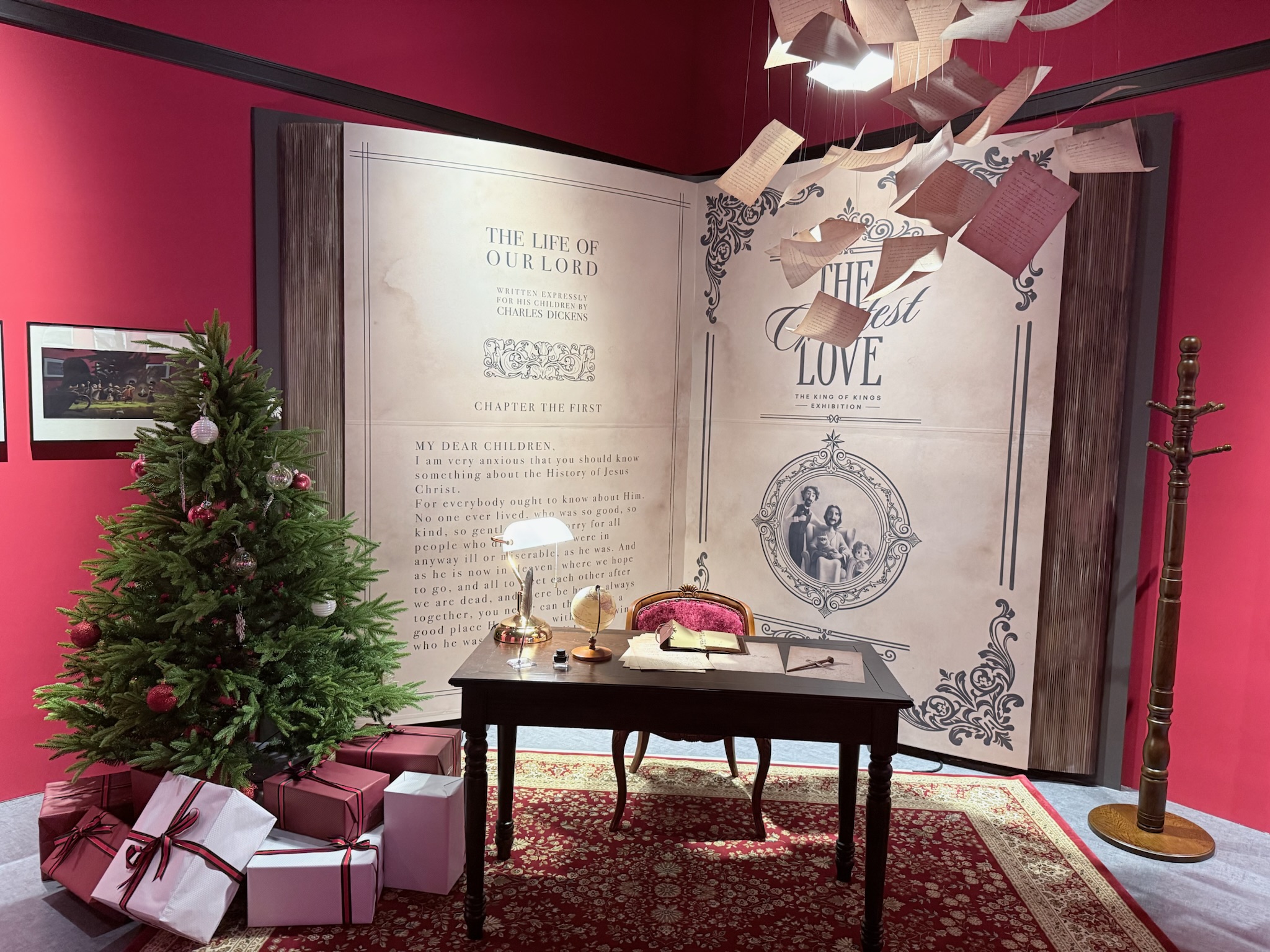 전시는 김포공항 롯데몰에서 2025년 10월 31일부터 2026년 4월 30일까지 이어진다. 전시장은 관람객이 ‘월터’가 된 듯한 경험을 하도록 설계되어 있다. 디킨스의 아들인 월터의 시선으로, 아버지의 이야기를 따라 예수님의 삶과 사랑을 다시 더듬어 가는 구조다.